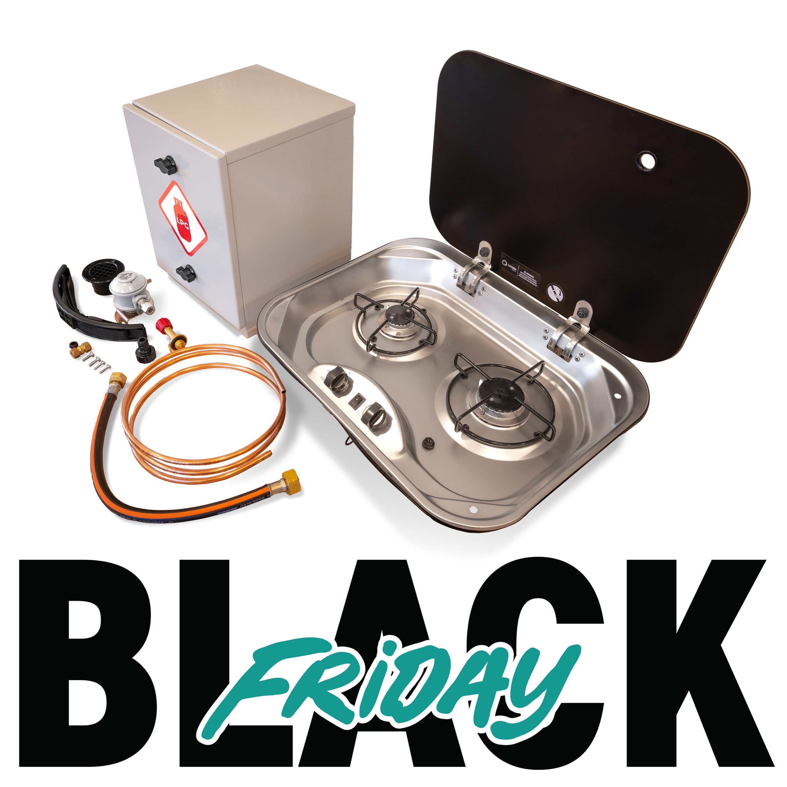 Specially curated for Black Friday 2025, we bring you this campervan 2-burner hob from Lavanda complete with our gas locker and comprehensive fitting kit.