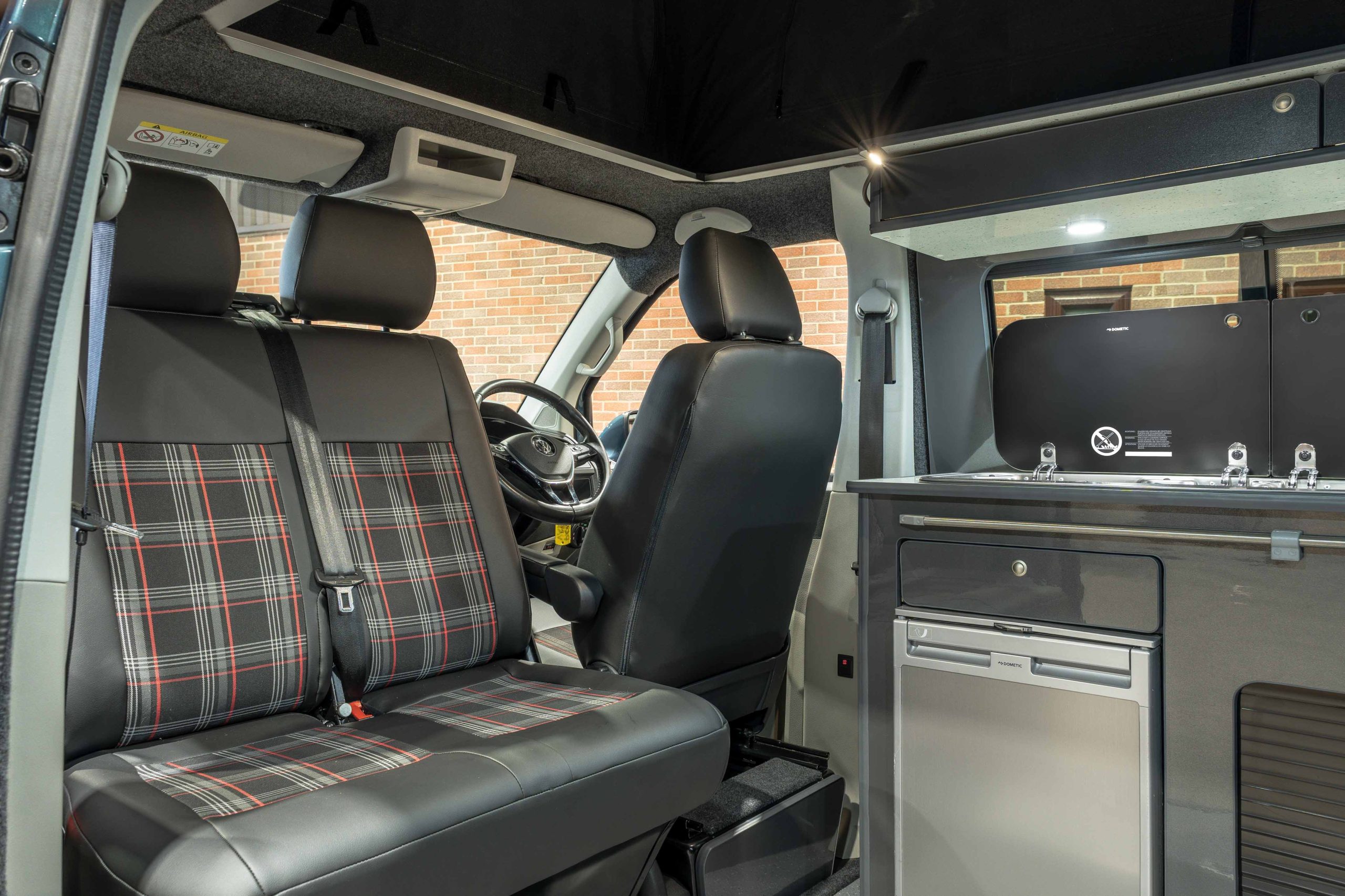 Just arrived into stock is this superb example of a 2018 Volkswagen Transporter T6 Campervan, finished in the striking and rare Bamboo Green. Professionally converted, this camper features a double passenger seat on a swivel base and a sliding, Tested Rock and Roll Bed upholstered in classic VW Golf GTI tartan with the units finished in gloss grey and the worktop in contrasting white sparkle.