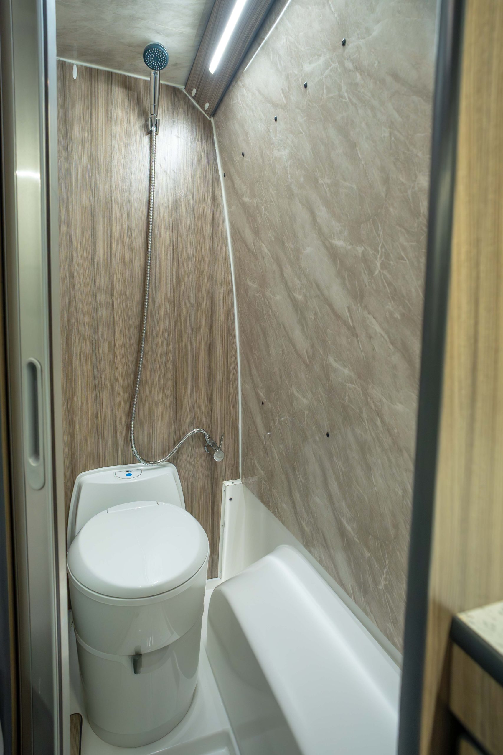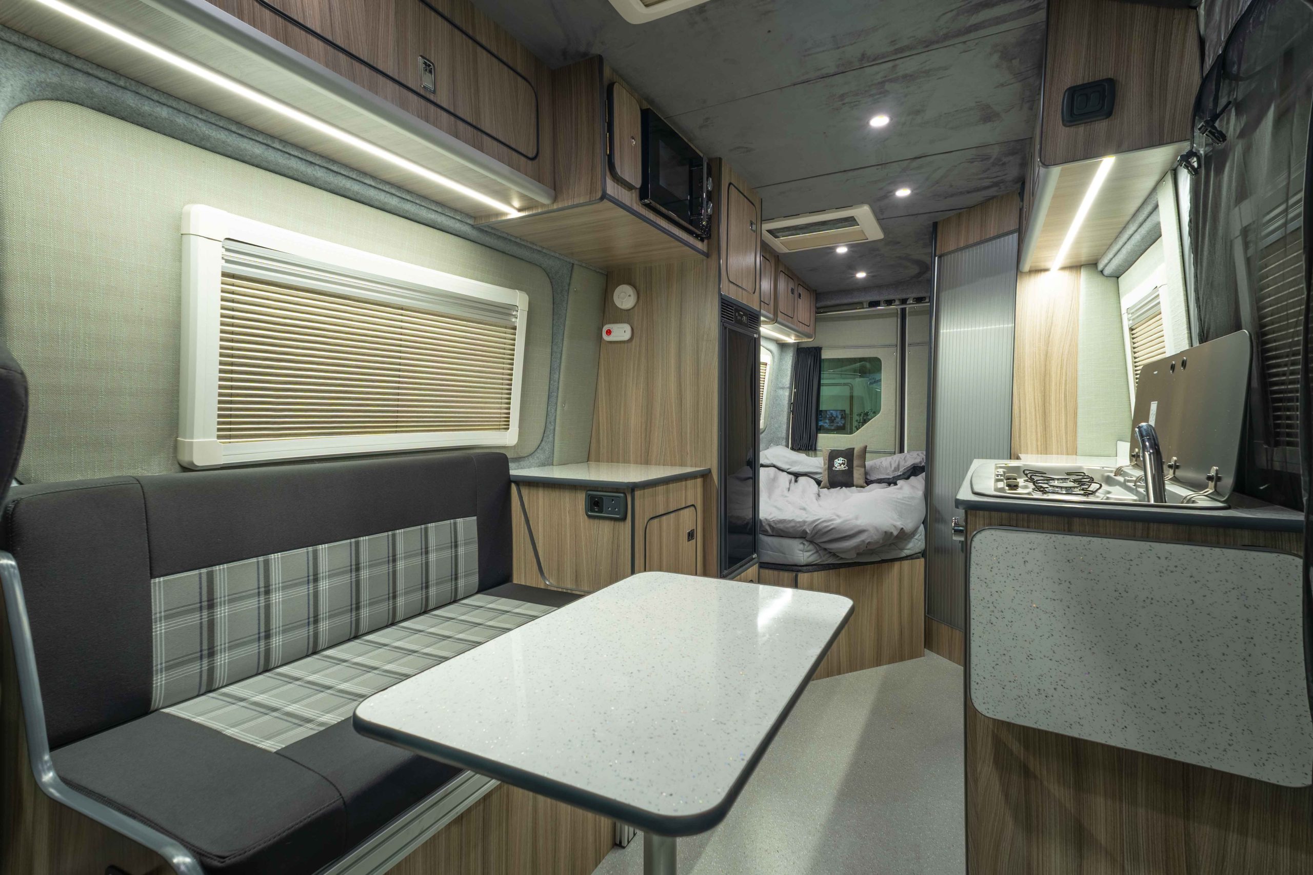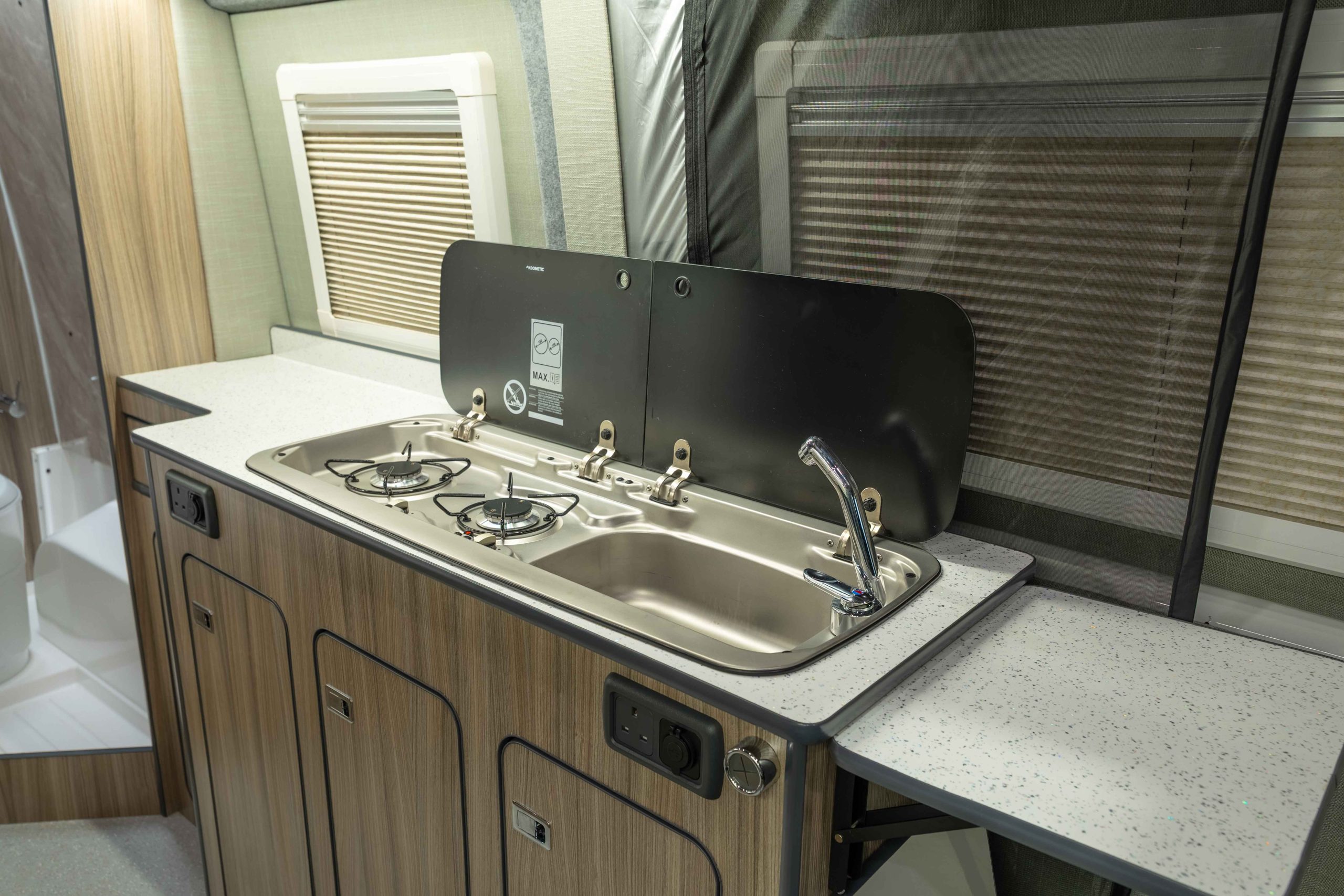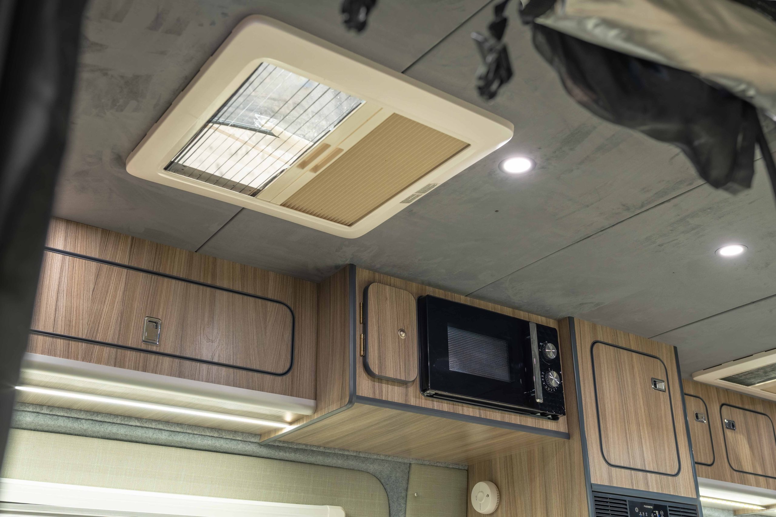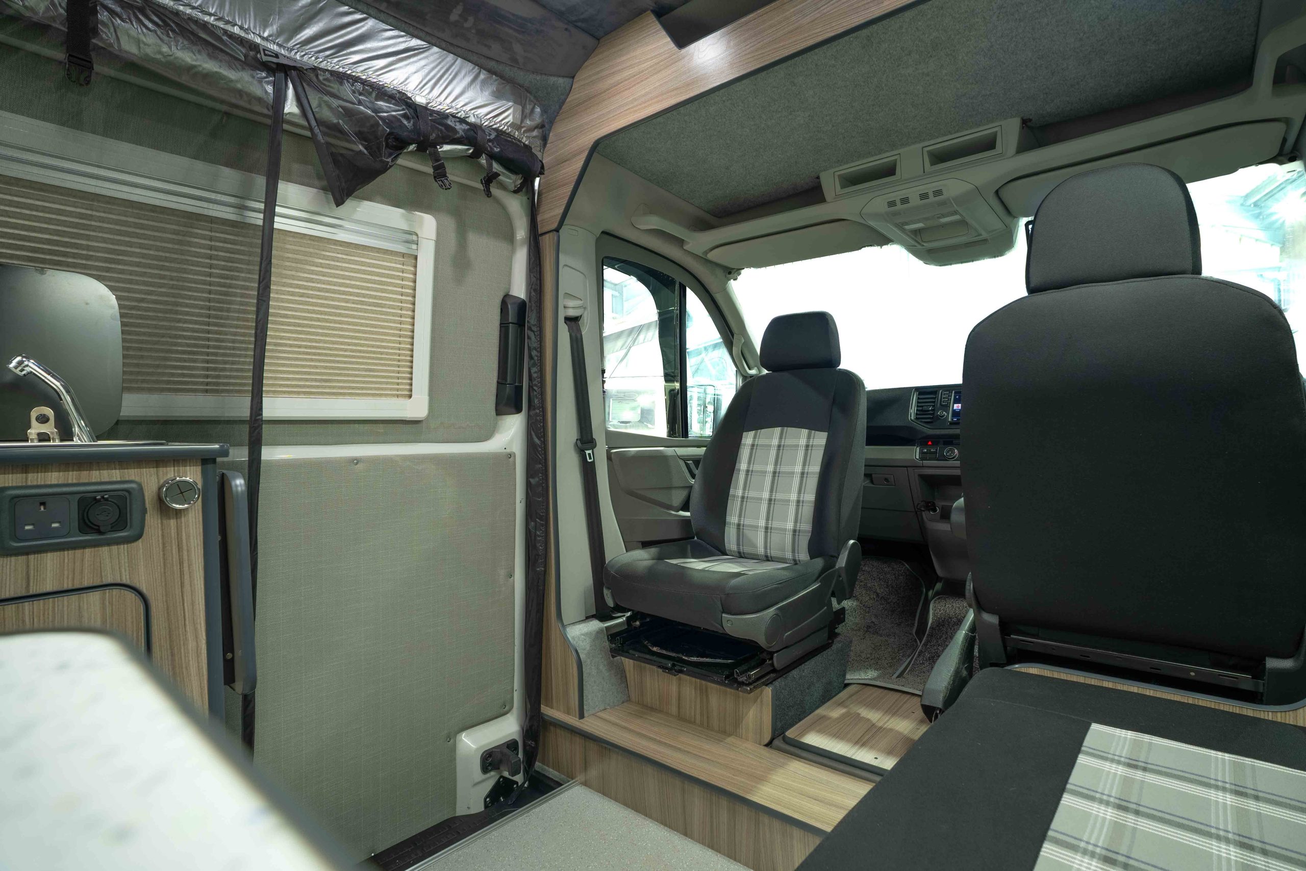 The base van is just as impressive with 16” black Romac alloys, Air Con, Electric Windows & Mirrors, Cruise Control and Rear Parking Sensors with Camera. Externally, there is a 240v Hook up point, Shower Point, Thule Omnistor Wind Out Awning and Integrated Flyscreen over the Sliding Door.