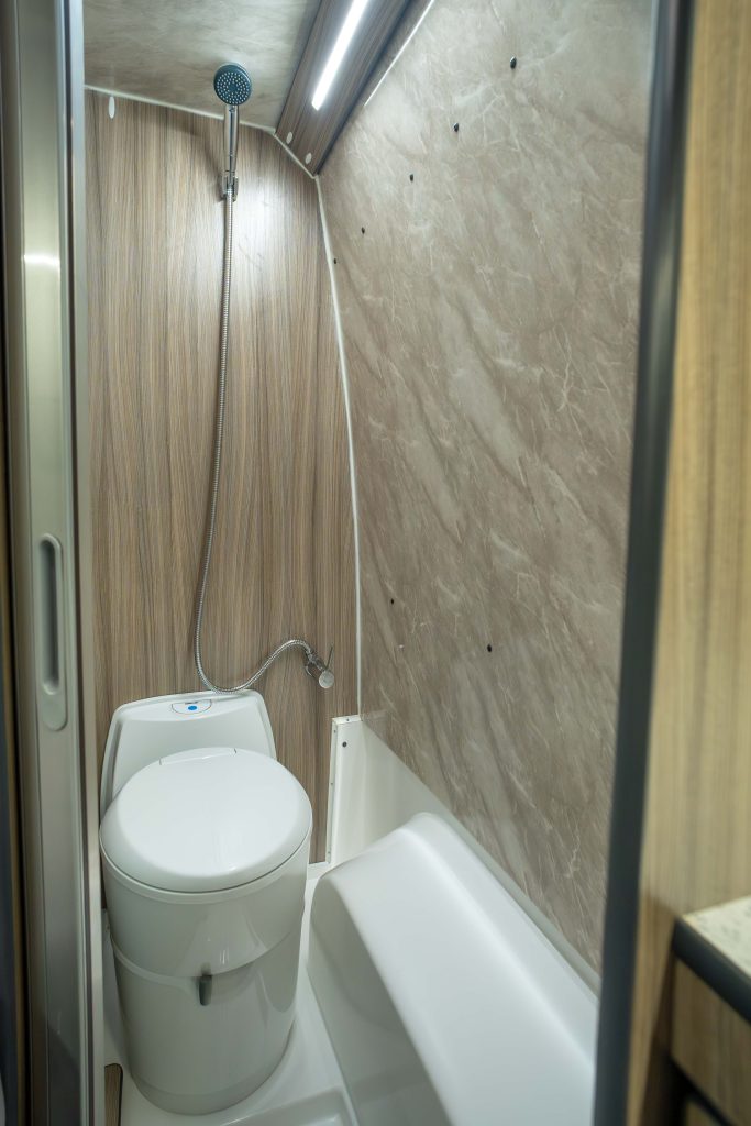 The conversion has been well thought out, with an extensive spec list including, small double bed at the rear, shower room with electric flush toilet, microwave, 200w inverter, Dometic sink/hob, Dometic tall fridge/freezer, Truma 4E Combi boiler and Remis cab blinds.