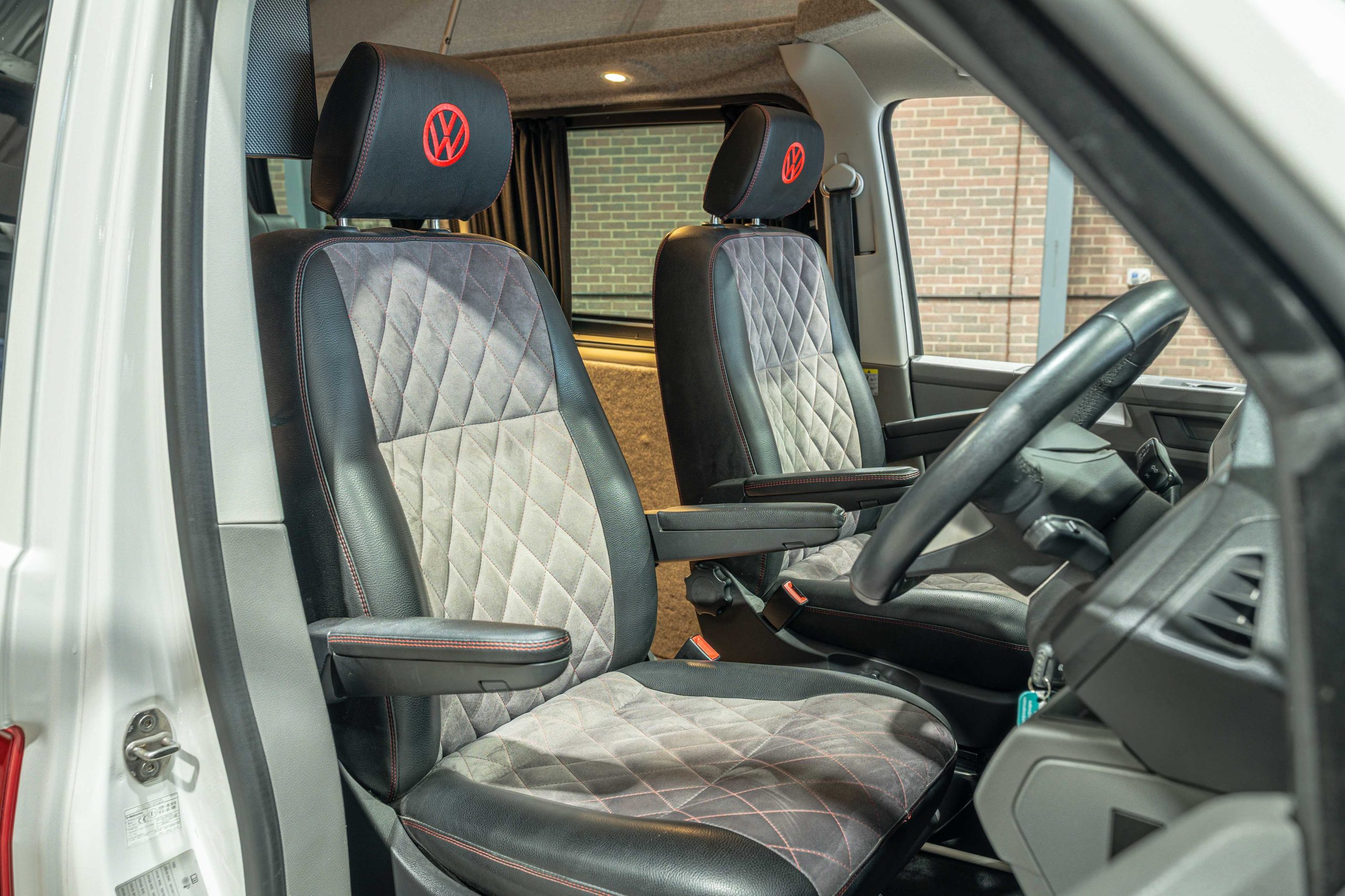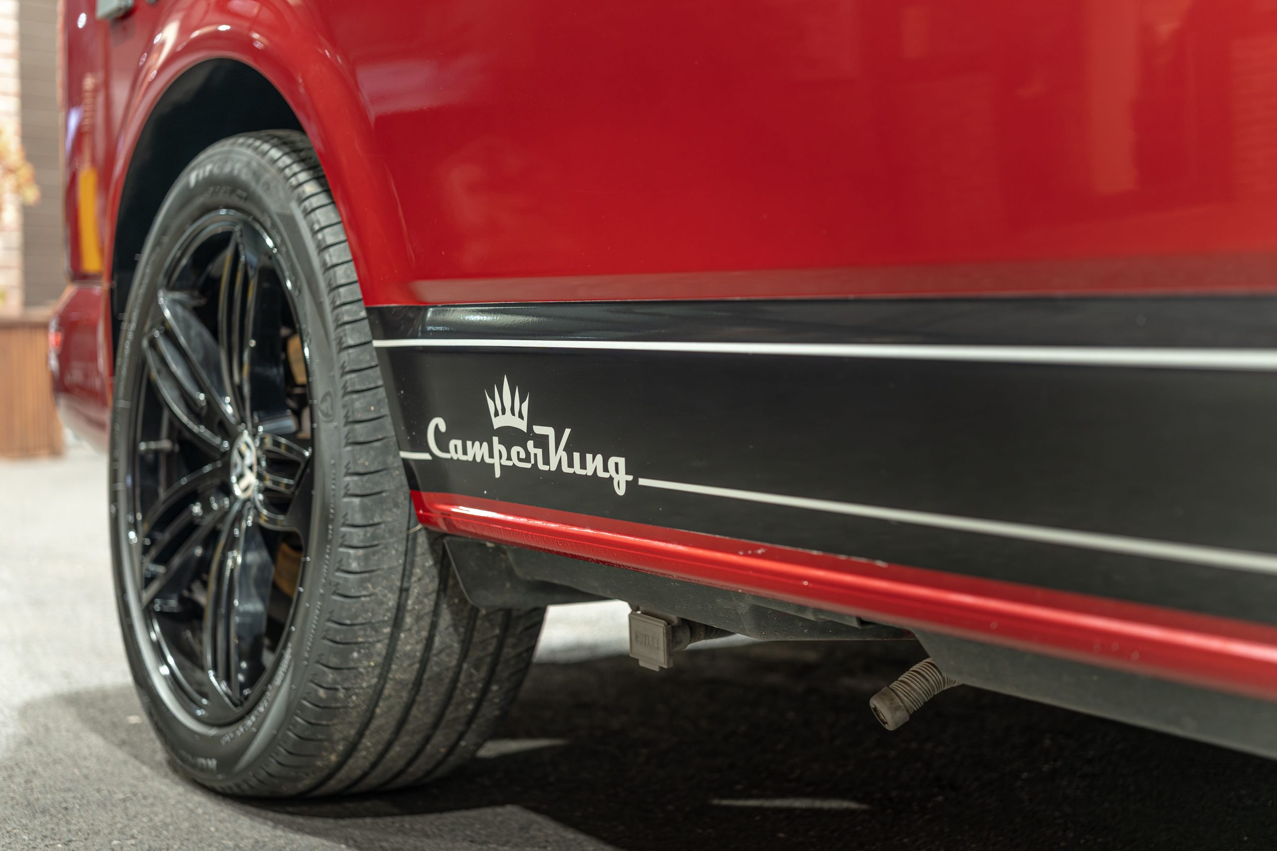 Just arrived into stock is this stunning 2021 Camper King converted T6.1 finished in a eye-catching two tone candy apple red over white colourway. Professionally converted by a well recognised name in the industry, this camper features two captains seats on swivel bases at the front finished in half leather and alcantara with contrasting diamond stitching throughout.