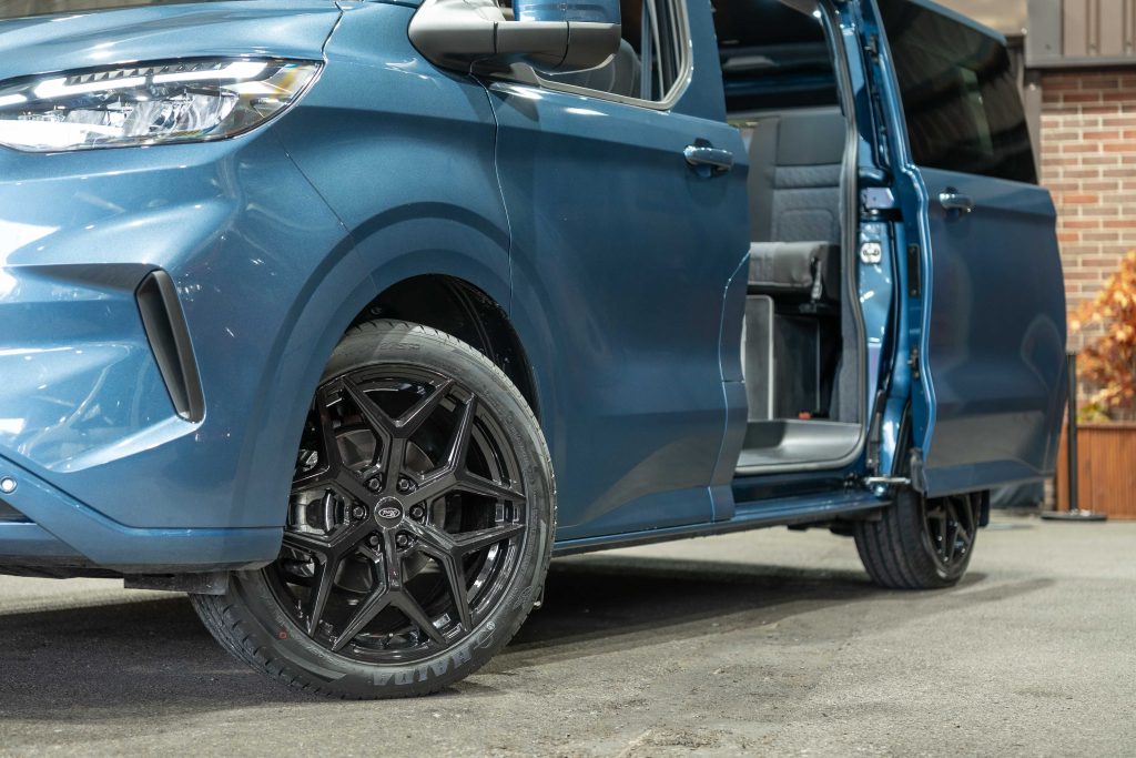 We have also upgraded the alloys from the standard size 16” to a set of gloss black 20” alloy wheels which suit the paintwork perfectly while adding to the modern style of the new Transit Custom.