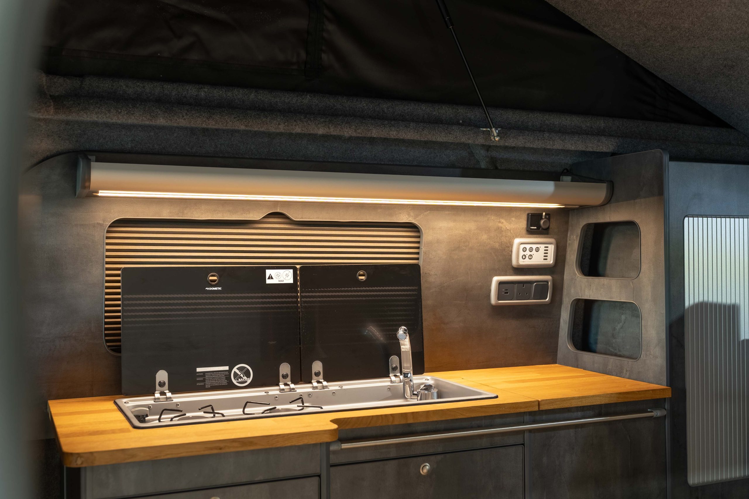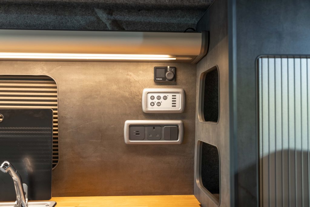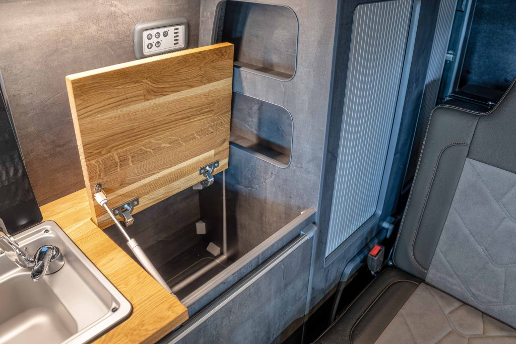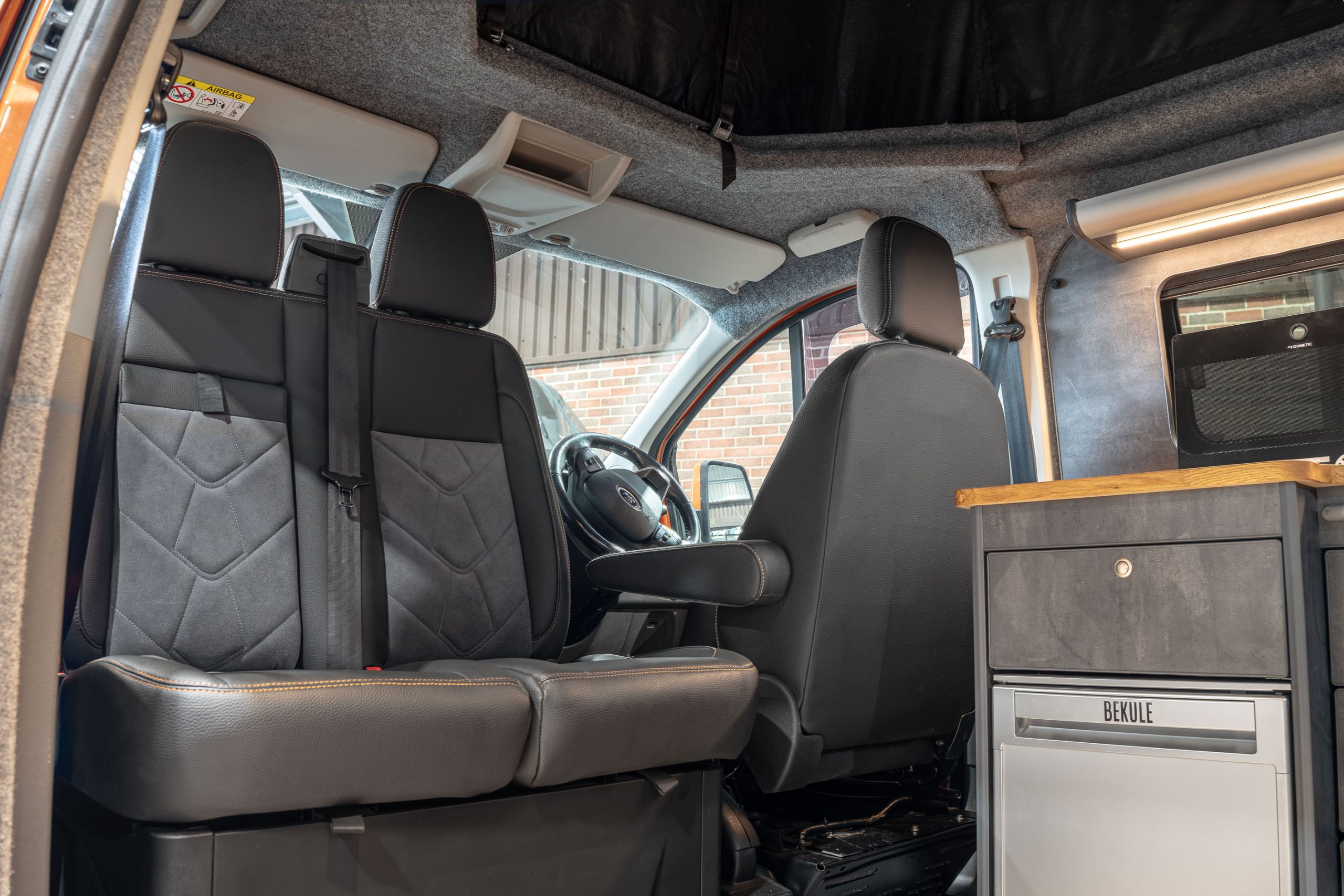 Now in stock here Autocraft Motor Caravans is this stunning 2018 Ford Transit Custom Sport in Orange Glow, professionally converted and is a one off and stands out from the rest – finished in Slate Grey ply with Real Oak worktop, with rock n roll bed with under bed storage, Sargent power management system and elevating roof with upper bed board creates this 4 berth campervan perfect for the family trips and daily driving alike.