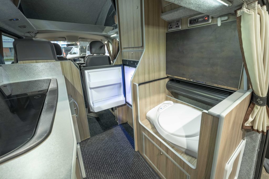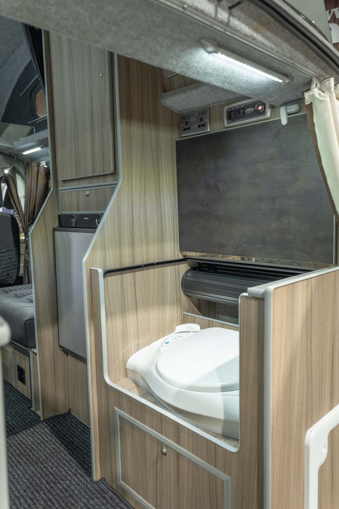 This Vivante offers a different layout to most campers of this size because you not only get the kitchen area, but there is also a built in electric flush toilet in its own enclosure for the ultimate convenience.
