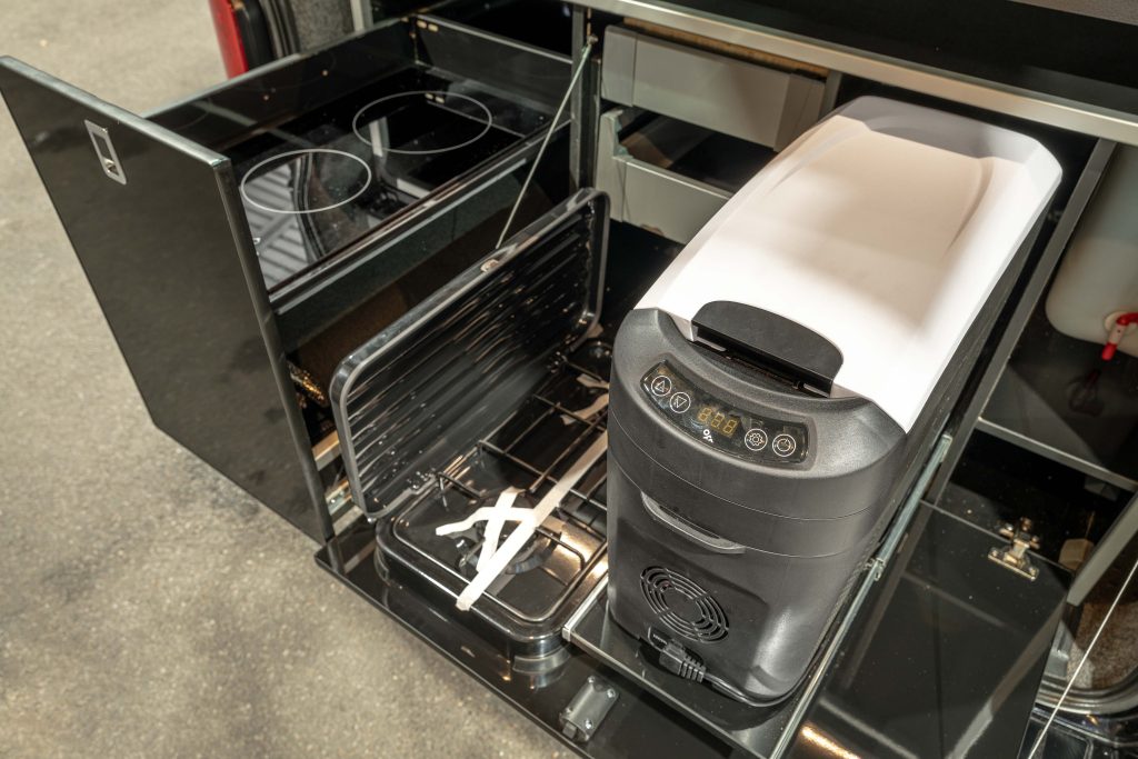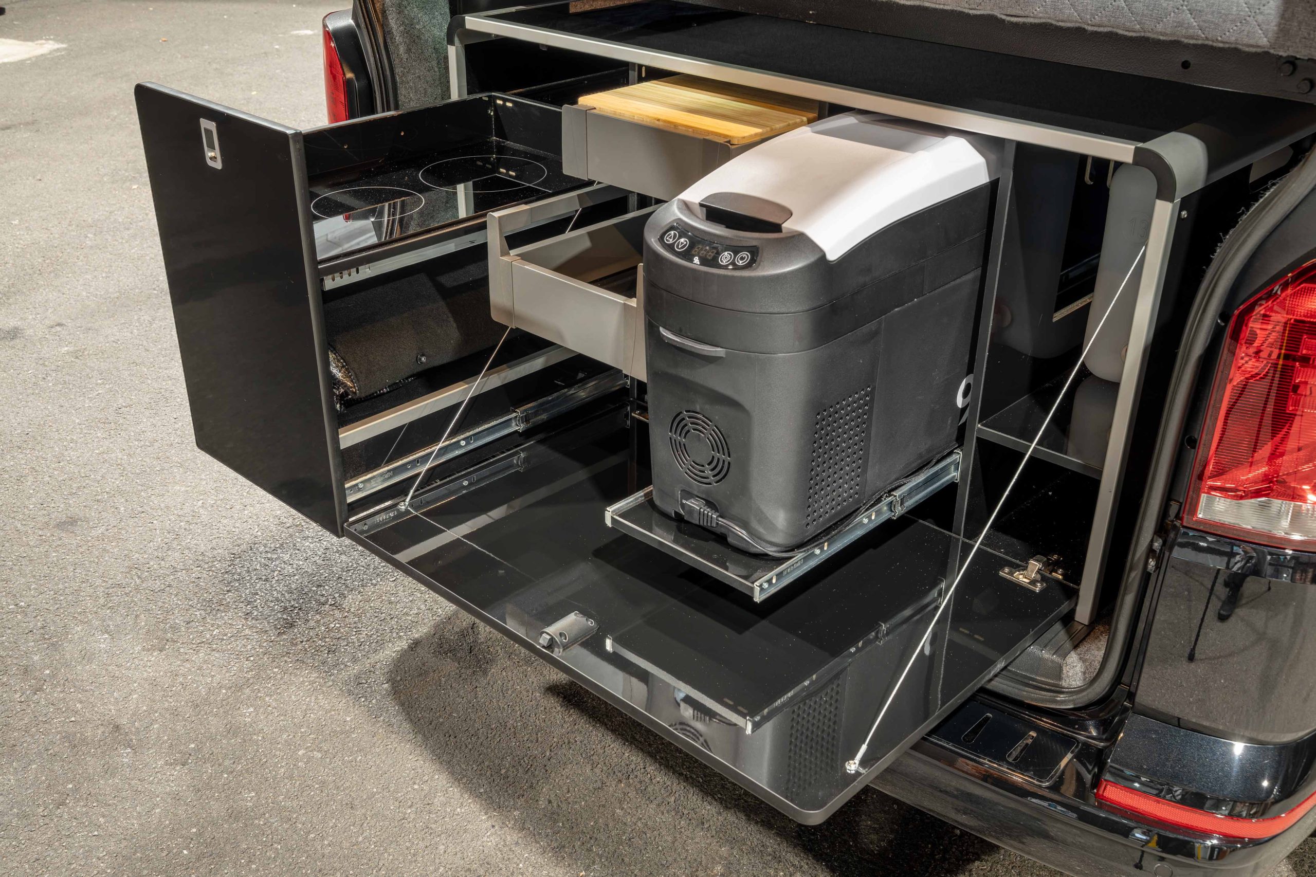 • Slyder rear slide-out pod for cooking, refrigeration and storage