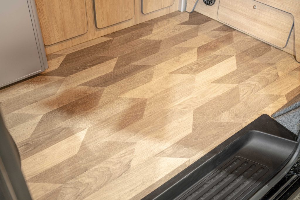This camper has a set of gloss black 20” alloy wheels, black lower side bars and a front lower splitter to complete the look.